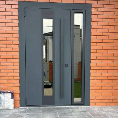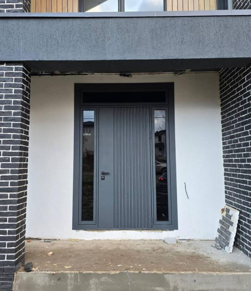 Серый сегодня — один из сильных трендов в дизайне входных групп. Он вписывается в любой стиль интерьера, подчёркивает статусность и остаётся практичным на годы. Сочетается с любым фасадом — от классического кирпича до ультрасовременного бетона.