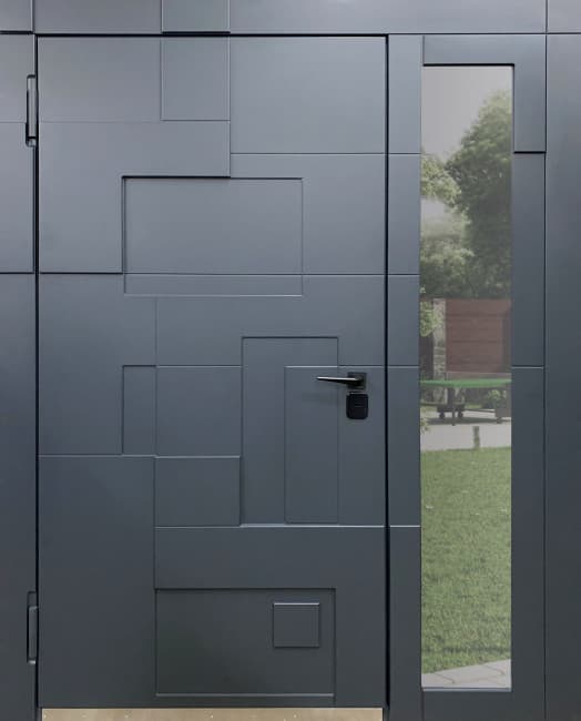 Декоративная отделка в цвете графит устойчива к механическим повреждениям, воздействию влаги и перепадам температуры, сохраняя первоначальный вид двери на протяжении многих лет.