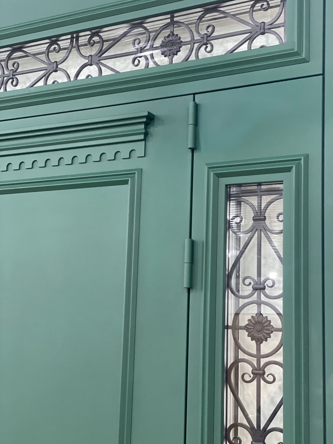 | Комплектация | - Отделка внешняя: Багеты, обрамление стеклопакетов, гребенка, карнизы полностью изготовлены из металла с применением современной технологии металлообработки. - Отделка внутренняя: Влагостойкий МДФ окрашенный эмалью RAL 9003. - Три контура с резиновым уплотнением которое обеспечивает герметичное прилегание дверного полотна к раме. - Заполнение дверного полотна теплоизоляционным материалом. - Терморазрыв дверного полотна и дверного блока. - Оцинкованная металлоконструкция от коррозии. - Боковые вставки и фрамуга оснащены прозрачными четырехкамерными стеклопакетами с коваными решётками. - Изготовление двери по индивидуальным размерам. |