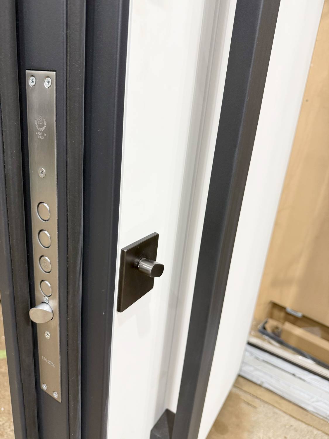 | Замок нижний | Securemme 2653 с электроприводом защёлки. ( Тип замка-цилиндровый. Комплектуется цилиндром Гардиан с термоштоком и защитной врезной броненакладкой). |