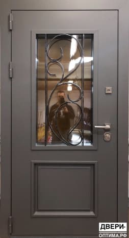 Размер двери 2100х950 мм. Тип металлоконструкции - Сложногнутый профиль полотна и рамы, сталь 1,5мм, терморазрыв.