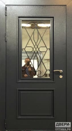 Размер двери 2100х950 мм. Тип металлоконструкции - Сложногнутый профиль полотна и рамы, сталь 1,5мм, терморазрыв.