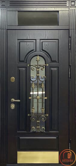 Термодверь ТР-67/1 со стеклом, ковкой и фрамугой — надёжное и стильное решение для вашего дома.