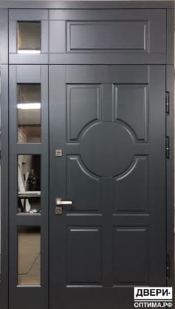 | Комплектация | Отделка внешняя: МДФ 10 мм "Шпон дуба". Фальшь филенка. Отделка внутренняя: МДФ 10 мм. "Шпон дуба" Фальшь филенка. Контурное уплотнение дверного полотна и дверного блока резиновыми уплотнителями. Заполнение дверного полотна теплоизоляционным материалом. Дверной блок и торцы дверного полотна окрашены порошковым напылением. Усиленные противосъемные блокираторы. Верхняя фрамуга и боковая вставка оснащена двухкамерными стеклопакетами с легкой тонировкой. Изготовление двери по индивидуальным размерам |
