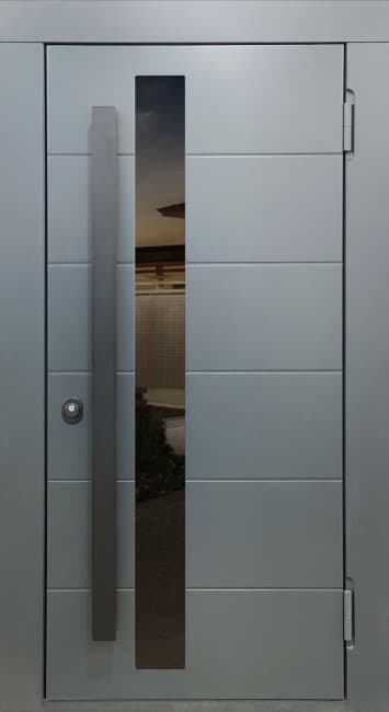 | Комплектация | - Отделка внешняя: МДФ, окрашенный эмалью RAL 7016. - Отделка внутренняя: МДФ, окрашенный эмалью RAL 7036. - Наружная вертикальная ручка с интегрированной LED RGB подсветкой. При необходимости LED подсветку можно отключать. (Уличные двери с вертикальной ручкой не комплектуются датчиком движения наружу. Датчик движения на подсветку ручки можно установить только во внутрь помещения ). - Ручка оснащена системой INTOUCH. С помощью данной системы язычок замка срабатывает при нажатие на кнопку, установленной на внутренней стороне ручки. - Три контура с резиновым уплотнением, которое обеспечивает герметичное прилегание дверного полотна к раме. - Заполнение дверного полотна теплоизоляционным материалом. - Трехкамерный стеклопакет с черной тонировкой шириной 150 мм. - Двойной терморазрыв. - Дверной блок и торцы дверного полотна окрашены порошковым напылением: снаружи "Муар 7016". - Оцинкованная металлоконструкция от коррозии. - Усиленные противосъемные блокираторы. - Изготовление двери по индивидуальным размерам. |