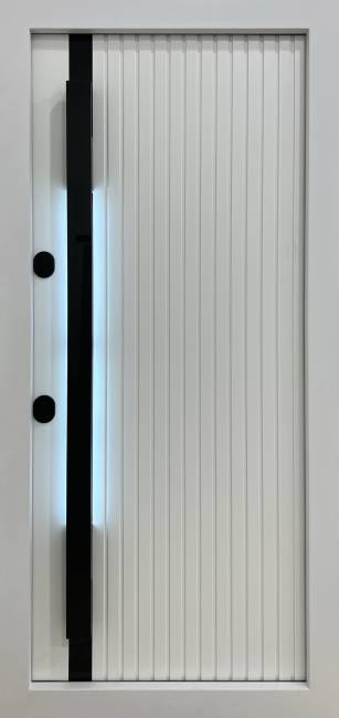 | Комплектация | - Отделка внешняя: панель МДФ, окрас эмалью RAL 7016 + вставка черного стекла стемалит. - Отделка внутренняя: панель МДФ, окрас эмалью RAL 9003 + вставка черного стекла стемалит. - Вертикальные ручки с интегрированной LED подсветкой и датчиком движения. При необходимости LED подсветку можно отключать. - Ручка оснащена системой INTOUCH. С помощью данной системы язычок замка срабатывает при нажатие на кнопку, установленной на внутренней стороне ручки. - Три контура с резиновым уплотнением, которое обеспечивает герметичное прилегание дверного полотна к раме. - Заполнение дверного полотна теплоизоляционным материалом. - Терморазрыв дверного полотна и дверного блока. - Дверной блок и торцы дверного полотна окрашены порошковым напылением: снаружи Муар 7016, внутри Муар 9003. - Оцинкованная металлоконструкция от коррозии. - Усиленные противосъемные блокираторы. - Изготовление двери по индивидуальным размерам. |