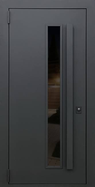 | Комплектация | - Отделка внешняя: порошковое напыление Муар 9005 (черный). - Отделка внутренняя: панель МДФ, окрашенный эмалью RAL 9005 (черный). - Вертикальная ручка оснащена системой INTOUCH. С помощью данной системы язычок замка срабатывает при нажатие на кнопку, установленной на внутренней стороне ручки. - Поворотная задвижка Crit. - Три контура с резиновым уплотнением, которое обеспечивает герметичное прилегание дверного полотна к раме. - Заполнение дверного полотна теплоизоляционным материалом. - Трехкамерный стеклопакет с черной тонировкой шириной 150 мм. - Двойной терморазрыв. - Оцинкованная металлоконструкция от коррозии. - Усиленные противосъемные блокираторы. - Изготовление двери по индивидуальным размерам. |