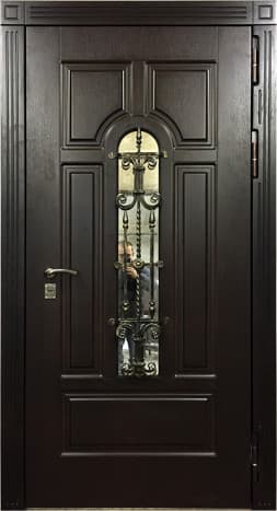 Дверь для коттеджа с ковкой, цвет венге