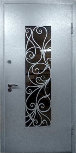 - Прозрачный стеклопакет с защитной кованой решеткой из стального квадрата 10 мм.