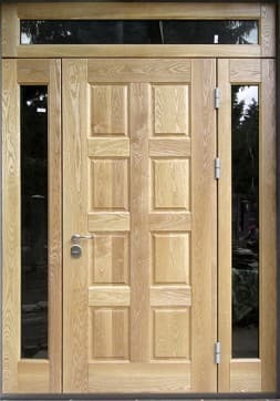 Дверь в загородный дом со стеклопакетами и фрамугой