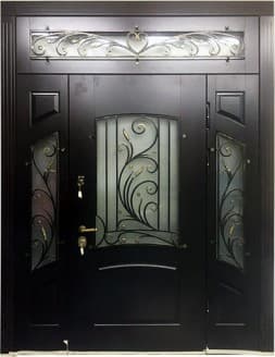 | Комплектация | * Наружная отделка: Фальшь филенка МДФ 10 мм. * Внутренняя отделка: Фальшь филенка МДФ 10 мм. * Контурное уплотнение дверного полотна и дверного блока. * Заполнение дверного полотна теплоизоляционным материалом. * Дверной блок и торцы дверного полотна окрашены порошковым напылением. * Усиленные противосъемные блокираторы. * 4 прозрачных стеклопакета с декоративными коваными решетками. * Изготовление двери по индивидуальным размерам. |