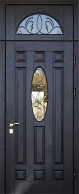 Входная дверь с отделкой натуральным дубом со стеклом и ковкой