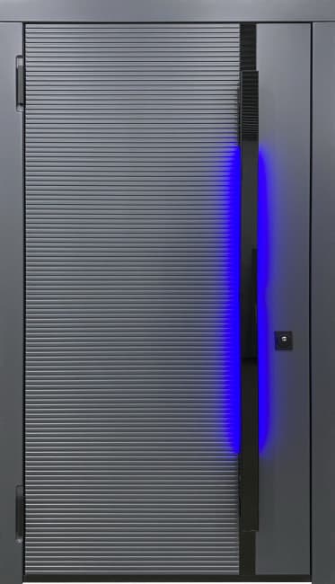 | Комплектация | - Отделка внешняя: МДФ эмаль серый графит RAL 7024 с вертикальным черным стеклом. - Отделка внутренняя: МДФ эмаль серый графит RAL 7024 с вертикальным черным стеклом. - Внешняя вертикальная ручка с интегрированной LED подсветкой с датчиком движения и возможностью отключения от сети. - Внутренняя вертикальная ручка с интегрированной LED подсветкой без датчика движения с возможностью отключения от сети. - В каждую ручку установлена система In touch для удобного открывания двери. - Три контура притвора с немецким резиновым уплотнением Schlegel которое обеспечивает герметичное прилегание дверного полотна к раме. - Заполнение дверного полотна звукоизоляционной минеральной плитой. - Шумопоглощающая проклейка дверного полотна вибропластом STP - Дверной блок и торцы дверного полотна окрашены порошковым напылением "Муар 9005". - Усиленные противосъемные блокираторы. - Изготовление двери по индивидуальным размерам. |