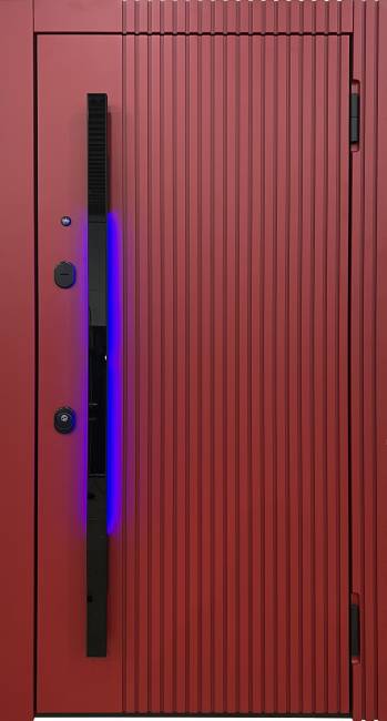 | Комплектация | - Отделка внешняя: панель МДФ толщиной 22 мм, грунт эмаль, цвет RAL 3002 с вертикальными рейками . - Отделка внутренняя: панель МДФ с покрытием пленкой ПВХ "Муар черный" - Внешняя вертикальная ручка INTOUCH с интегрированной LED подсветкой синего цвета c возможностью отключения принудительной кнопкой и датчиком движения. - Внутренняя ручка нажимная Armadillo (дизайн ручки по выбору заказчика). - Два контура уплотнения которые обеспечивают герметичное прилегание дверного полотна к раме. - Заполнение дверного полотна звукоизоляционной минеральной плитой. - Шумопоглощающая проклейка дверного полотна вибропластом STP - Дверной блок и торцы дверного полотна окрашены порошковым напылением "Муар 9005". - Усиленные противосъемные блокираторы. - Изготовление двери по индивидуальным размерам. |