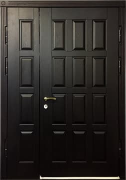 Двустворчатая входная квартирная дверь с отделкой МДФ темного цвета