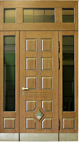 | Комплектация | Контурное уплотнение дверного полотна и дверного блока. Заполнение дверного полотна теплоизоляционным материалом. Усиленные противосъемные блокираторы. Двухкамерные стеклопакеты. Дверной блок и торцы дверного полотна окрашены порошковым напылением (медный антик). Нижняя часть двери отделана декоративным латунным отбойником. Изготовление двери по индивидуальным размерам. |
