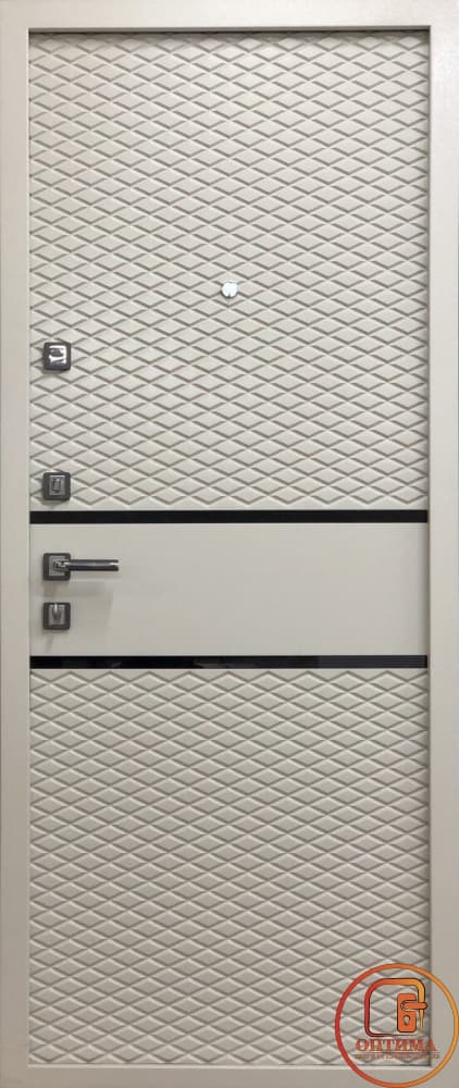 - Панель МДФ с 3 D фрезеровкой, окрас эмалью RAL 1013 с черными стеклянными вставками.