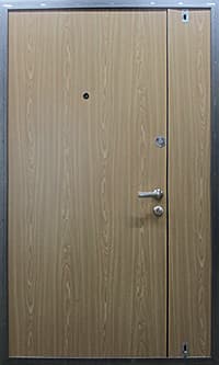 Двустворчатый дверной блок с ассиметричными по ширине дверными створками. Дизайн модели минималистичен и прост до предела. Дверное полотно имеет абсолютно гладкую поверхность и выполнено заподлицо. Минимальный перечень и лаконичный дизайн фурнитуры эффектно дополняет образ дверного блока. С внутренней стороны модель выглядит совсем иначе: мягкой, комфортной, очень домашней. Запорные механизмы повышенной безопасности, функциональная дверная ручка, усиленные петли и блокираторы значительно повышают комфорт и безопасность пользования.