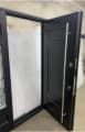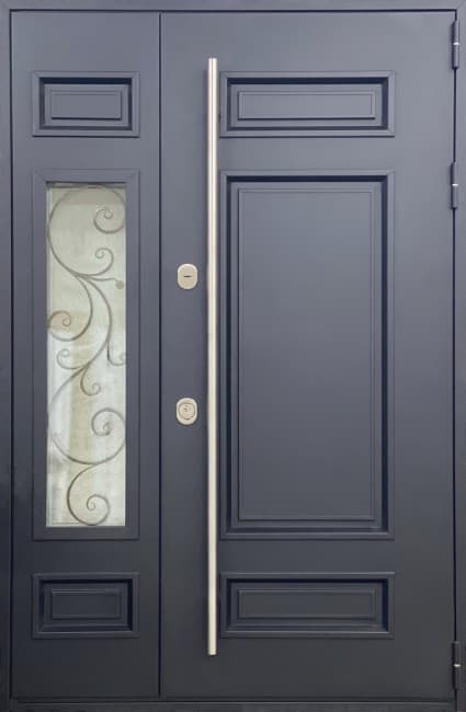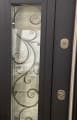 Уличная дверь с металлофиленкой со стеклом и ковкой