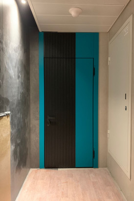 Коробка двери крепится прямо к стене, а петли могут располагаться как внутри (и быть невидимыми), так и снаружи. Полотно подготавливается для дальнейшей покраски, благодаря чему после отделки стены и двери образуется единая поверхность. Такие двери отлично подходят для помещений, где важна точность линий и гармония цвета.
