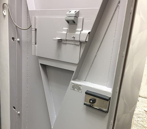 4. Замки. Каждая из дверей комплектуется замком повышенной секретности (не ниже 3-4 класса защиты). Для усложнения доступа замки сплошной и решётчатой двери различаются своими конструкциями. Ригели замков изготавливаются из проката большого сечения.