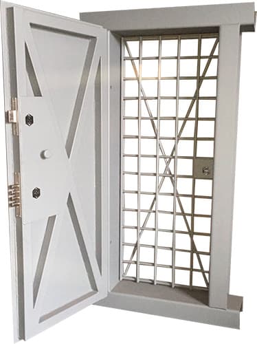 | Комплектация | Наполнение: Минвата Задвижка: Cталь Притворная планка: С внутренней стороны: полоса 16x4 мм Противосъемные ригели диаметром 14 мм |