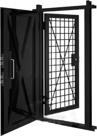 | Комплектация | Задвижка: Cталь Наполнение: Минвата Притворная планка: С внутренней стороны: полоса 16x4 мм Противосъемные ригели диаметром 14 мм Шумотеплоизоляция: Резиновый уплотнитель (1 контур) |