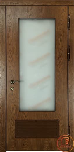 | Комплектация | - Наружная отделка: МДФ шпонированный с влагостойкой обработкой. Тонировка мореный дуб. - Внутренняя отделка: Порошковое напыление RAL 8011. - Контурное уплотнение дверного полотна и дверного блока. - Заполнение дверного полотна теплоизоляционным материалом. - Усиленные противосъемные блокираторы. - Дверной блок и торцы дверного полотна окрашены порошковым полимерным напылением. - Регулируемая вент. решетка 250х600 мм - Двухкамерный матовый стеклопакет размером 1300х500 мм, S-0.65 м/кв - Изготовление двери по индивидуальным размерам. |