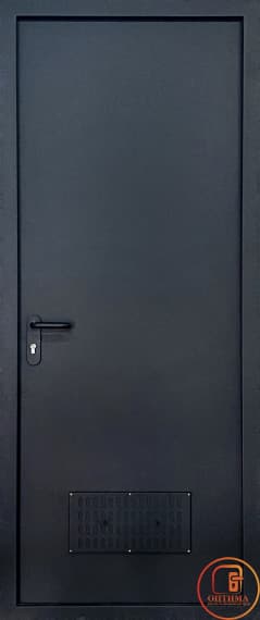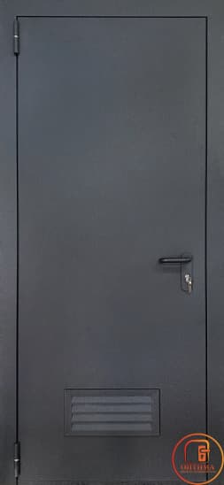 Стальная дверь в котельную/электрощитовую с вентиляционной решеткой.