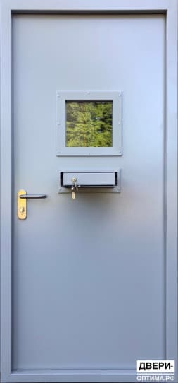 Стальная дверь в кассу с окном и передаточным лотком КС-2 — надёжное решение для обеспечения безопасности кассового помещения.
