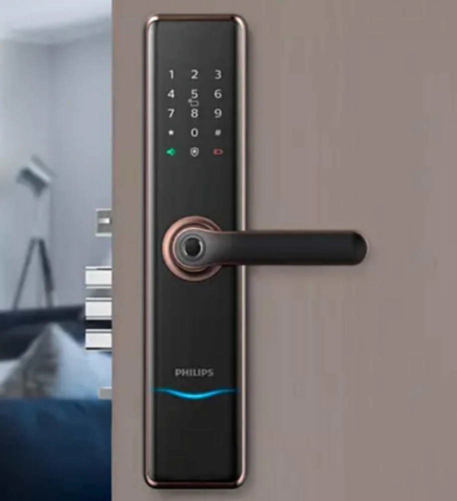 Цифровой замок Philips 7300 отличается элегантным простым дизайном. Он компактный и тонкий, поэтому не займет много места
