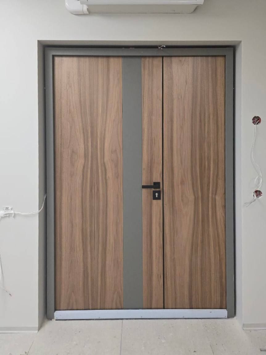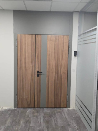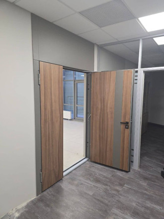 Установили двустворчатую дверь в новом офисном помещении нашего заказчика — результат получился действительно впечатляющим.