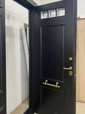 Двупольная входная дверь с необычным решением - фото
