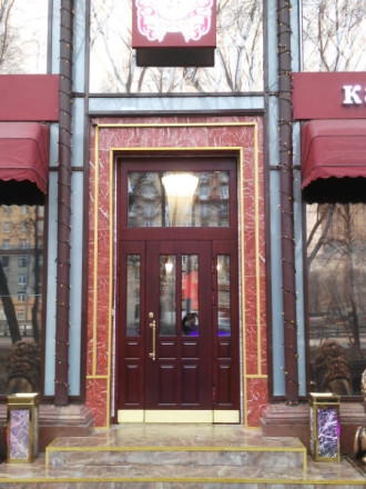 Установка входной парадной группы в ресторан «Бархат». Москва, Волоколамское шоссе.