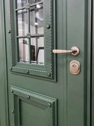 Обилие декоративных элементов, резные багетные рамы, английская решётка и всё это в трендовом — изумрудном цвете.