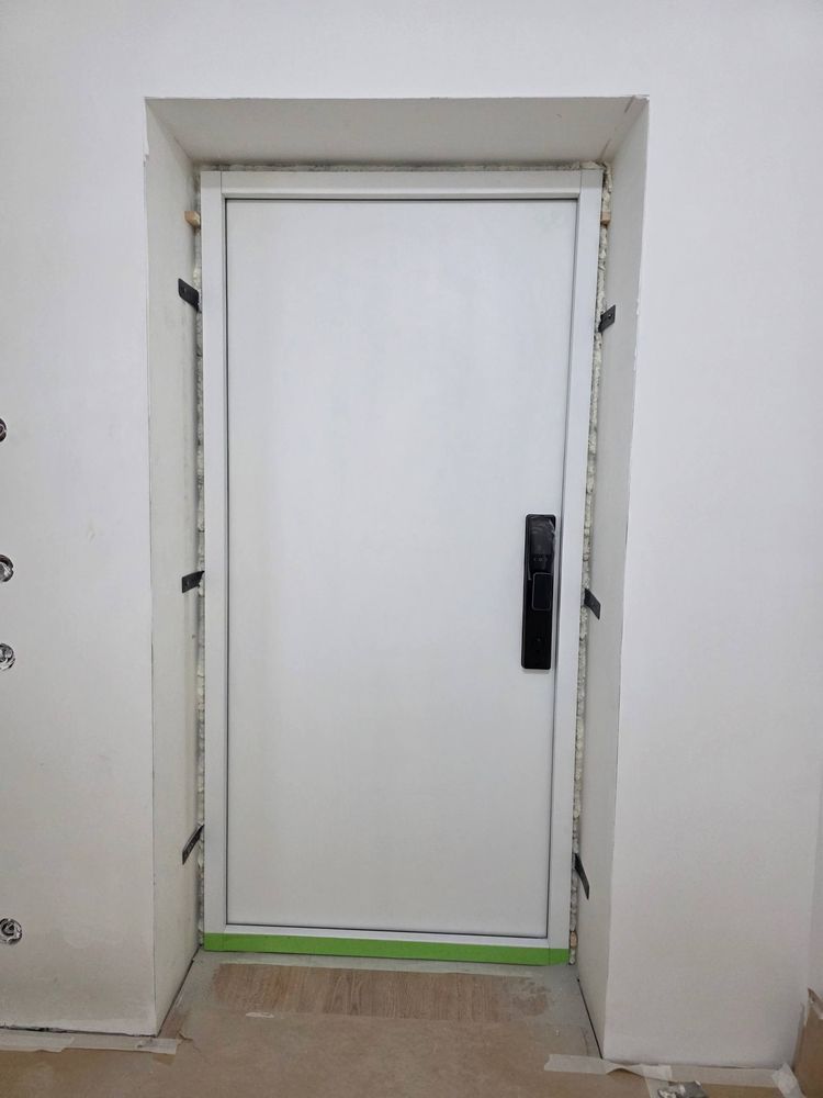 Клиенту было важно получить не просто дверь, а цельное решение для входной зоны, где дверь и прилегающие стены выглядят как единый дизайнерский элемент. Дополнительно — акцент на комфорт (тишина) и технологичность (умный замок).