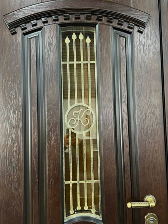 Такая комбинация элементов создаёт по-настоящему роскошную, элегантную дверь, которая станет центральным элементом входной группы и подчеркнёт классический стиль дома.