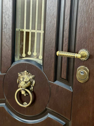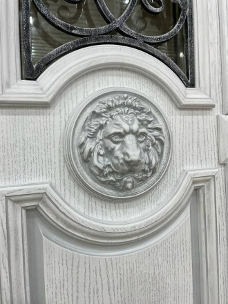 Кнокер (дверной молоток) — декоративный и функциональный элемент, выполнен в виде головы льва.