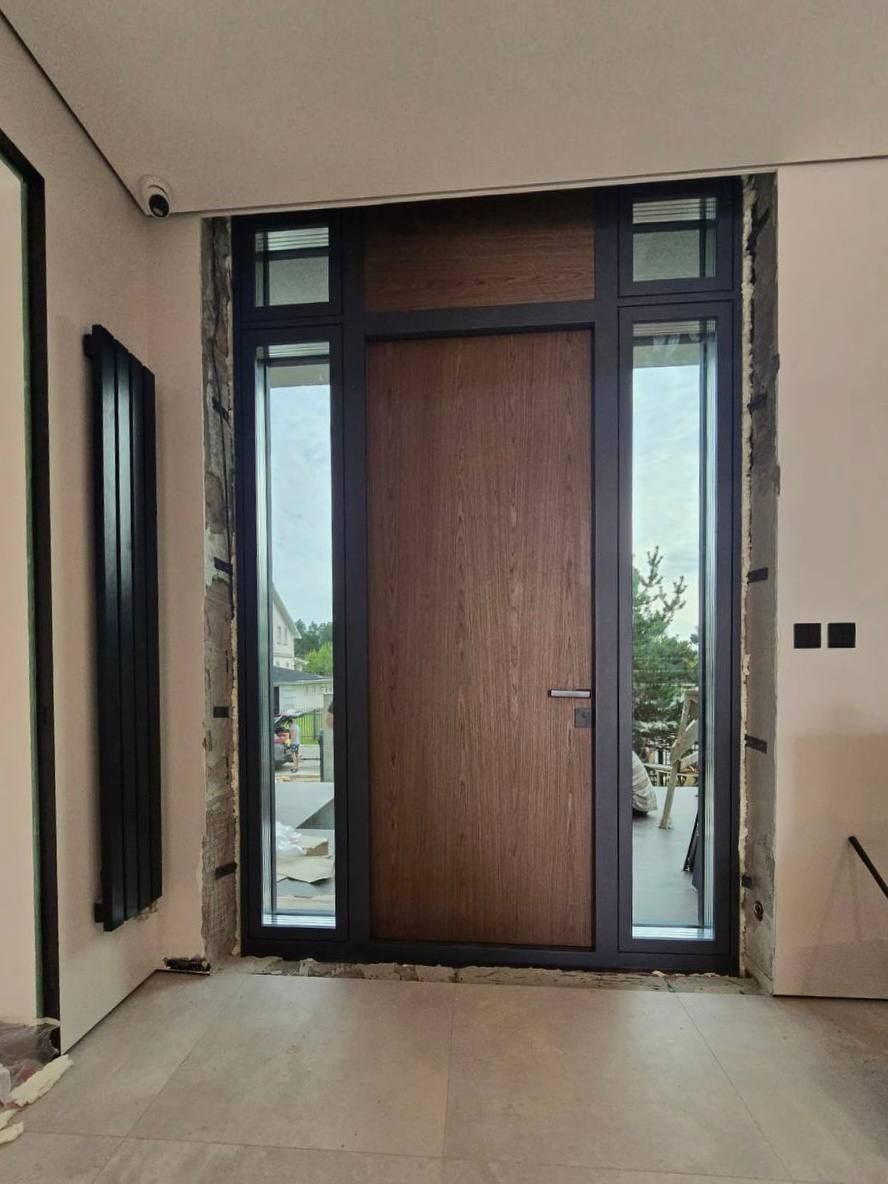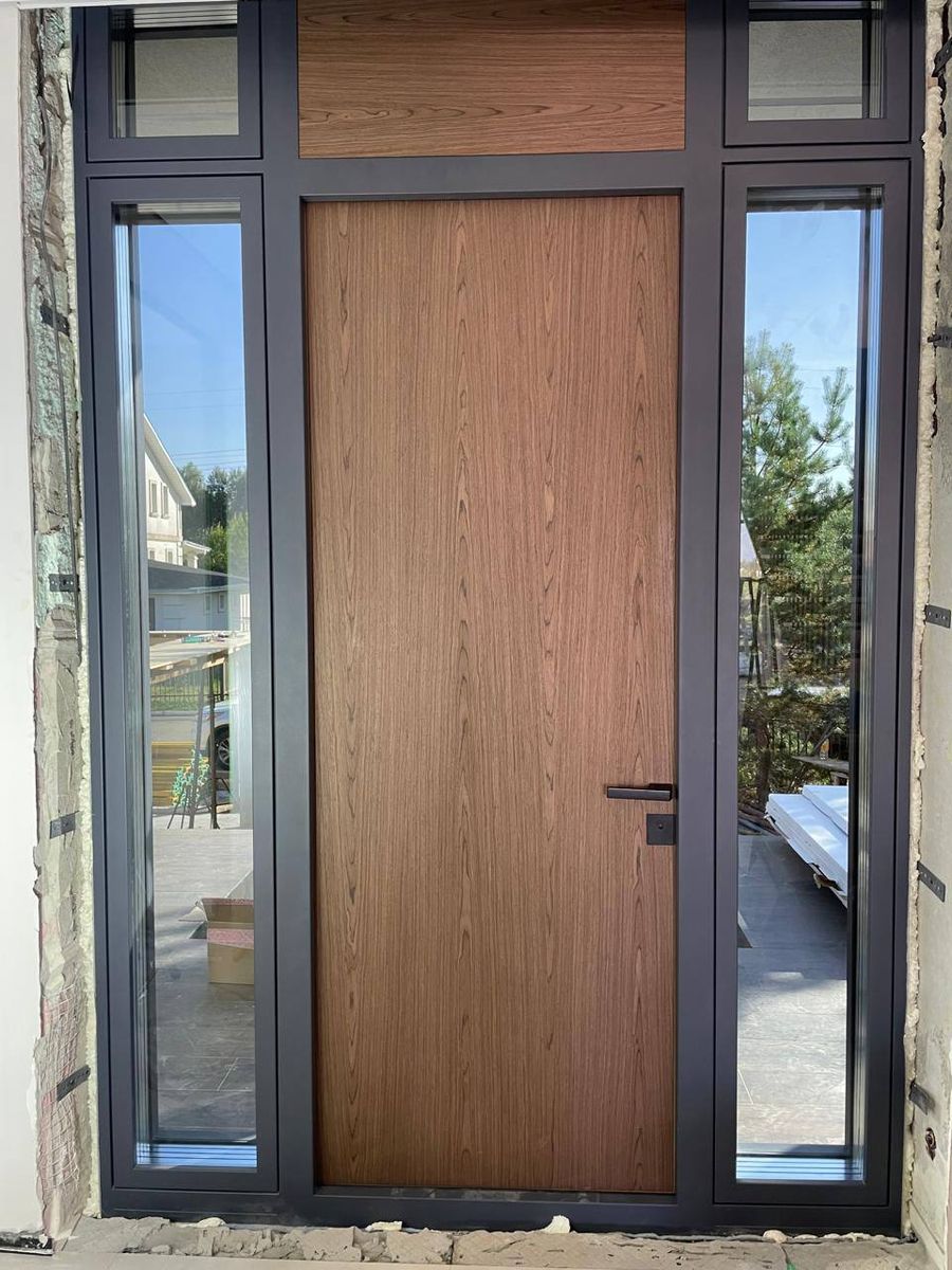Входная группа с отделкой дверного полотна текстурным пластиком HPL