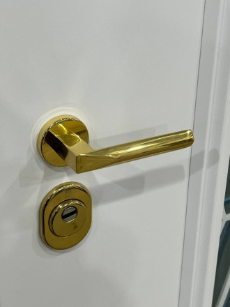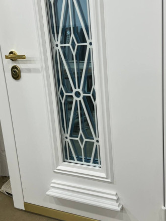 Интересное исполнение багета в необычном, для уличной двери оттенке.