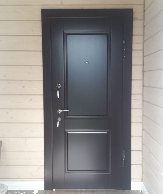 Скорость чистки входной двери важна для моделей с уязвимыми покрытиями, такими как эмаль. К ним относится морозостойкая входная с 3D-панелями ТР-4. Ее внешняя отделка выполнена из влагостойкого МДФ с 3D-фрезеровкой и эмалью RAL 7024 в сочетании с черной стеклянной вставкой. Внутренняя – из влагостойкого МДФ с 3D-фрезеровкой и эмалью RAL 9003.