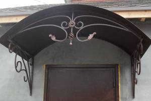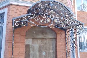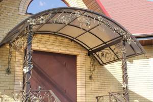 Достаточно простой и недорогой навес данного типа имеет ряд преимуществ. Металлический каркас козырька способен выдержать любую кровлю, обладает длительным сроком эксплуатации, привлекателен внешне. При проектировании металлического козырька необходимо учитывать его большой вес.